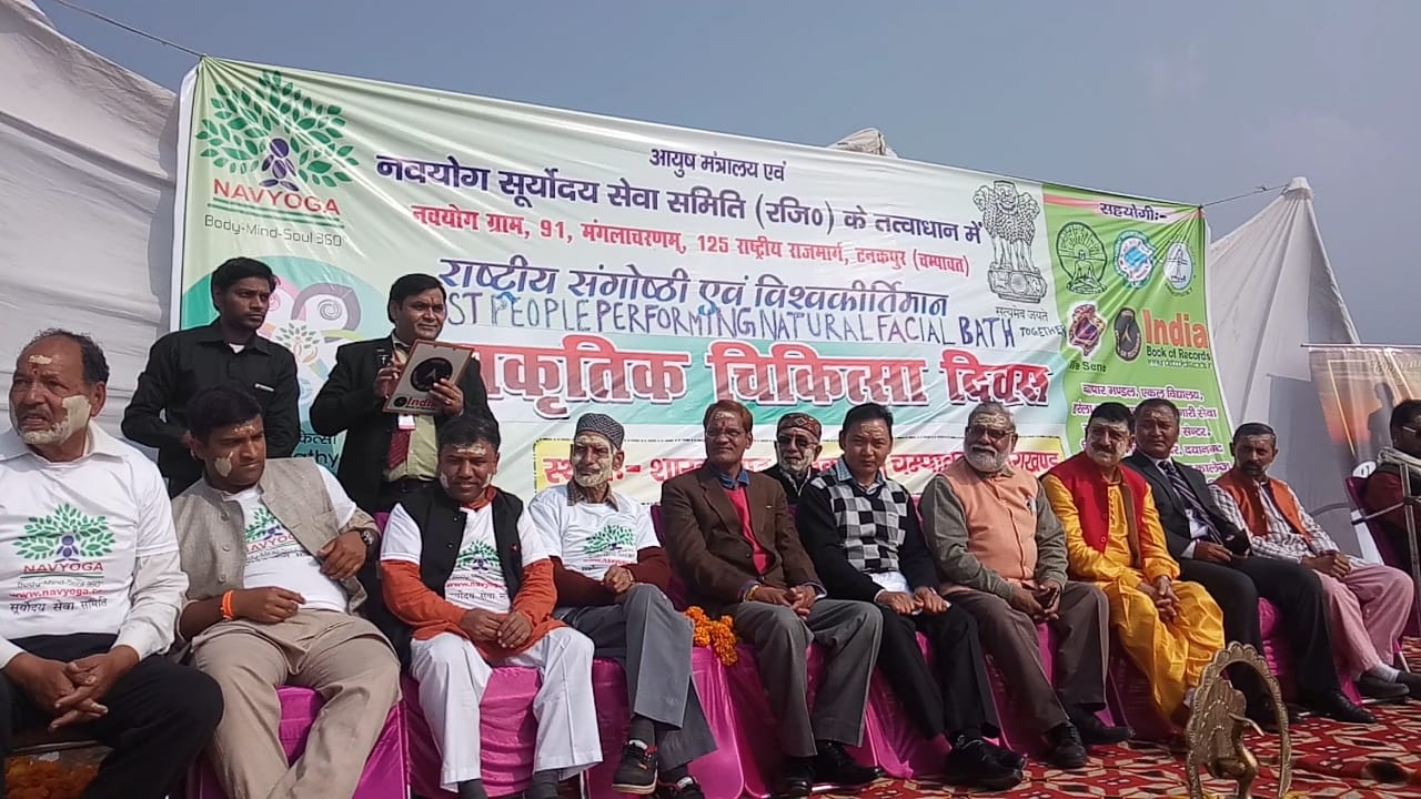 टनकपुर(चम्पावत)– उत्तराखण्ड के सीमान्त जिले टनकपुर में 2 दिसम्बर रविवार के दिन शारदा नदी के तट शारदा घाट एक अनोखे कीर्तिमान का गवाह बना है। टनकपुर के ही युवा डॉ नवदीप जोशी ने अपनी संस्था नवयोग सर्वोदय सेवा समिति के बैनर तले माँ शारदा नदी के तट पर लगभग एक हजार से भी अधिक लोगों के साथ प्राकृतिक चिकित्सा के प्रोत्साहन हेतु फेसपैक लगा टनकपुर व अपनी संस्था का नाम इंडिया बुक ऑफ रिकॉर्ड में दर्ज करा नया कीर्तिमान बनाया है।