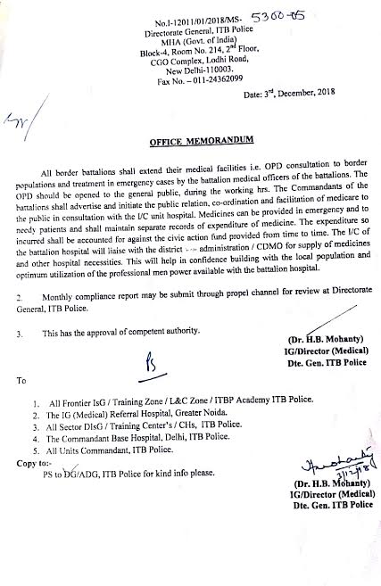 आईटीबीपी ने उसके लिए अपने सभी बटालियन प्रमुखों को आदेशित कर दिया है की उत्तराखण्ड में जंहा जंहा आईटीबीपी की बटालियन मौजूद है वहाँ पर आमजन को इलाज के साथ साथ दवाओं को भी मुफ्त दिया जाए। इसके अलावा स्थानीय जिला प्रशासन व स्थानीय चिकित्सा अधिकारियों से समन्वय स्थापित करेंगे ताकि नागरिको के उपचार में दवाओं का संकट बाधा ना बन सके। वही बलूनी के अनुसार आईटीबीपी ने यह भी स्पष्ठ किया है कि जनता को जो दवाएं मुफ्त दी जाएगी वह आईटीबीपी के *सिविक एक्शन फंड* से दी जाएंगी।ओर उनका अलग रजिस्टर भी तैयार किया जाएगा।