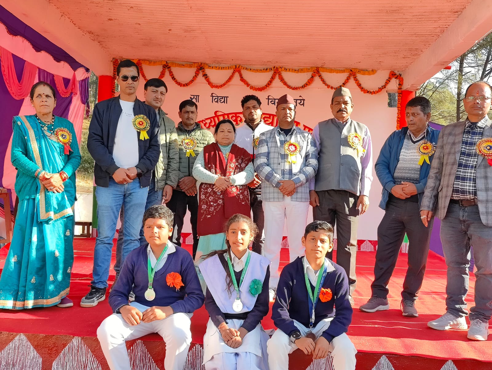 इस अवसर पर कार्यक्रम में जिला अध्यक्ष भाजपा इंद्र फर्सवाण निवर्तमान अध्यक्ष नगर पालिका सुरेश खेतवाल , दयाल कांडपाल प्रबंधक विद्यालय रेखा पाठक , सहित शिक्षक शिक्षिकाएं व क्षेत्रीय जनता उपस्थित रही।