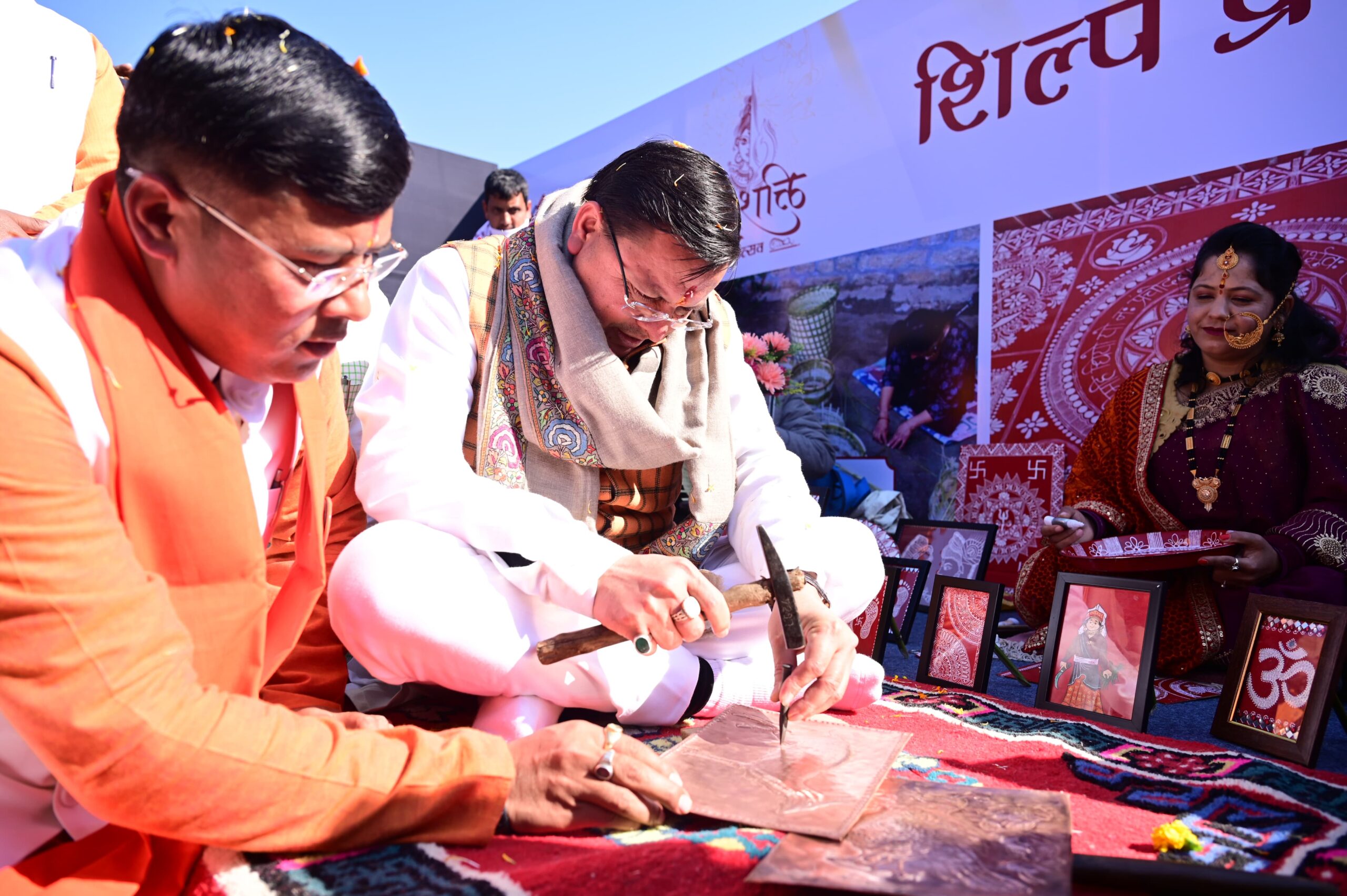 कार्यक्रम के दौरान मुख्यमंत्री ने विभिन्न विभागों एवं स्वयं सहायता समूह द्वारा लगाए गए स्टालों का निरीक्षण किया। उन्होंने विभिन्न घाटियों में निर्मित हस्तशिल्प और हस्तकला उत्पादों की भी सराहना की। मुख्यमंत्री ने स्वयं भी तांबे के बर्तन में कलाकृतियां एवं रिंगाल की टोकरी भी बनाई। उन्होंने सशक्त मातृशक्ति सशक्त उत्तराखंड के तहत मातृशक्ति का पूजन कर शहीदों की वीरांगनाओं को भी सम्मानित किया। जनपद में साहसिक पर्यटन, आपदा प्रबन्धन गतिविधियों का भी अवलोकन कर मुख्यमंत्री ने विभिन्न योजनाओं से लाभान्वित हुये लाभार्थियों को चेक भी वितरित किए।