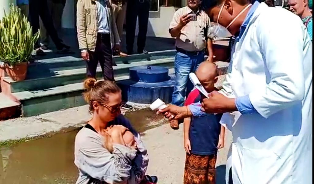 दी टॉप टैन न्यूज़(खटीमा)-रशियन दम्पत्ति को बच्चो सहित खटीमा निवासी अपने दोस्त के घर पहुँचना उस वक्त भारी पड़ गया। जब जब रशियन फैमली के खटीमा पहुँचने की सूचना मिलने पर एलआईयू कर्मियों व लोकल पुलिस ने विदेशी नागरिक को परिवार सहित थाने बुलवा लिया।कोरोना की आशंका के मद्देनजर स्वास्थ्य विभाग ने जंहा थाने में ही विदेशी दम्पत्ति उसके बच्चो व दोस्त की स्क्रीनिंग की,साथ ही रशियन परिवार से भारत आने सहित सभी दस्तावेजो की भी की जांच की गई।