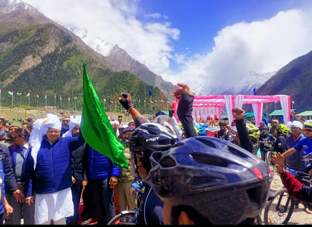 मुख्यमंत्री पुष्कर सिंह धामी ने बुधवार को आजादी का अमृत महोत्सव कार्यक्रम के तहत 10500 फिट की ऊंचाई पर स्थित गुंजी धारचूला में आयोजित साहसिक एमटीबी साइकिल रैली टूर द कैलाश को हरी झण्डी दिखाकर ज्यौलीकांग और नभीढांग के लिए रवाना किया। इस दौरान मुख्यमंत्री ने कुटी और यांगती नदी में राफ्टिंग करने वाले दल को भी रवाना किया।