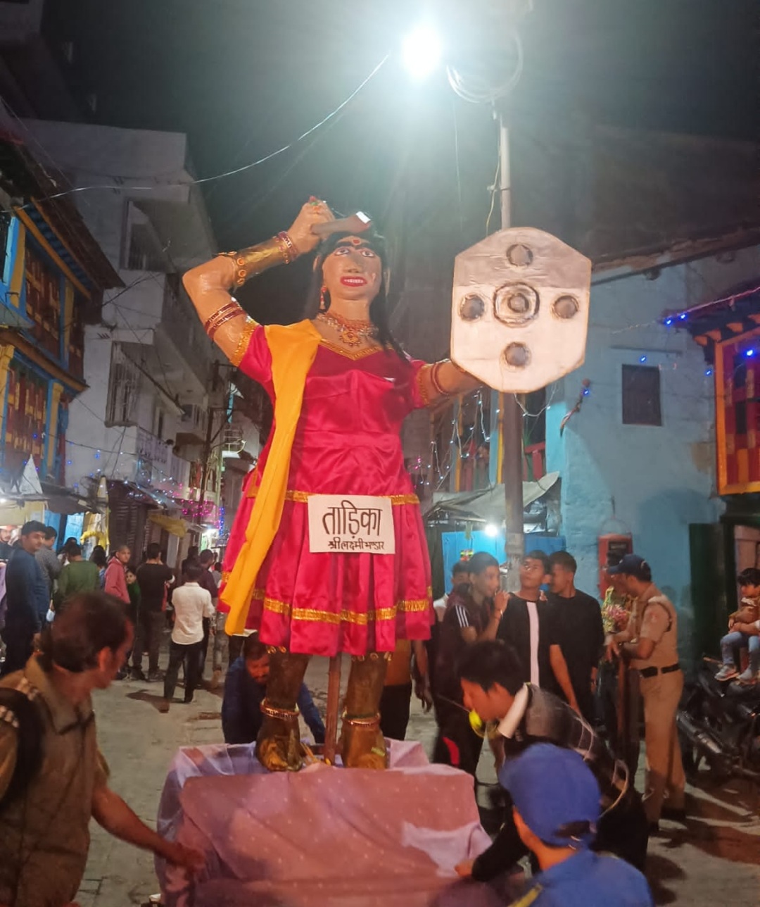 रावण परिवार के पुतलों से पूर्व मां दुर्गा की प्रतिमाओ की शोभा यात्रा निकाली गई। स्थानीय नदी में उन्हे विसर्जित किया गया।