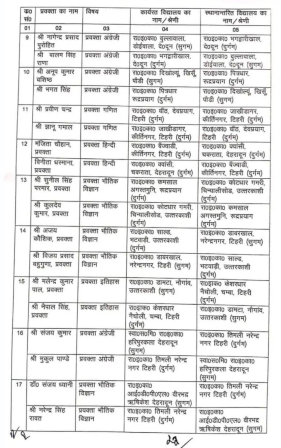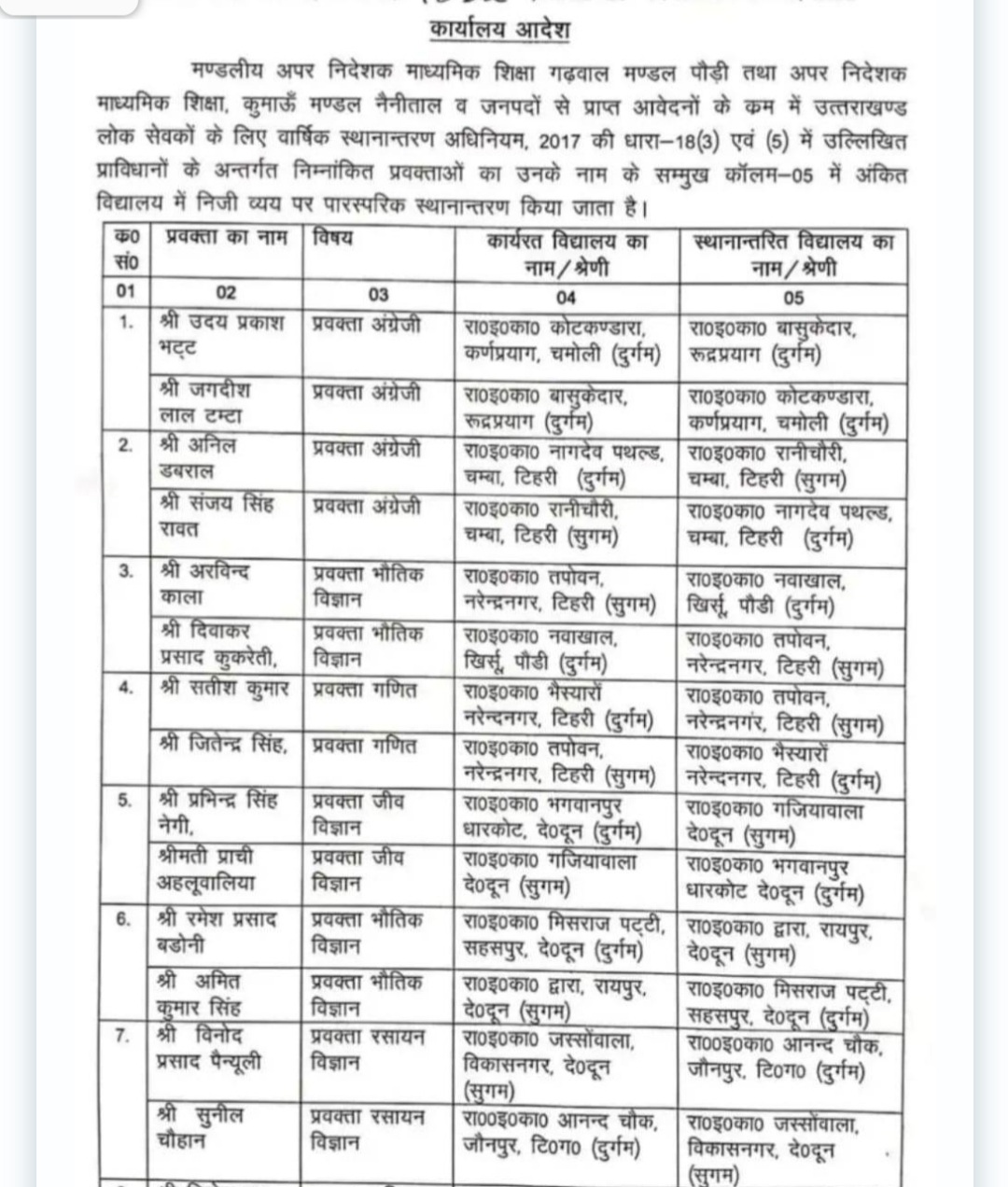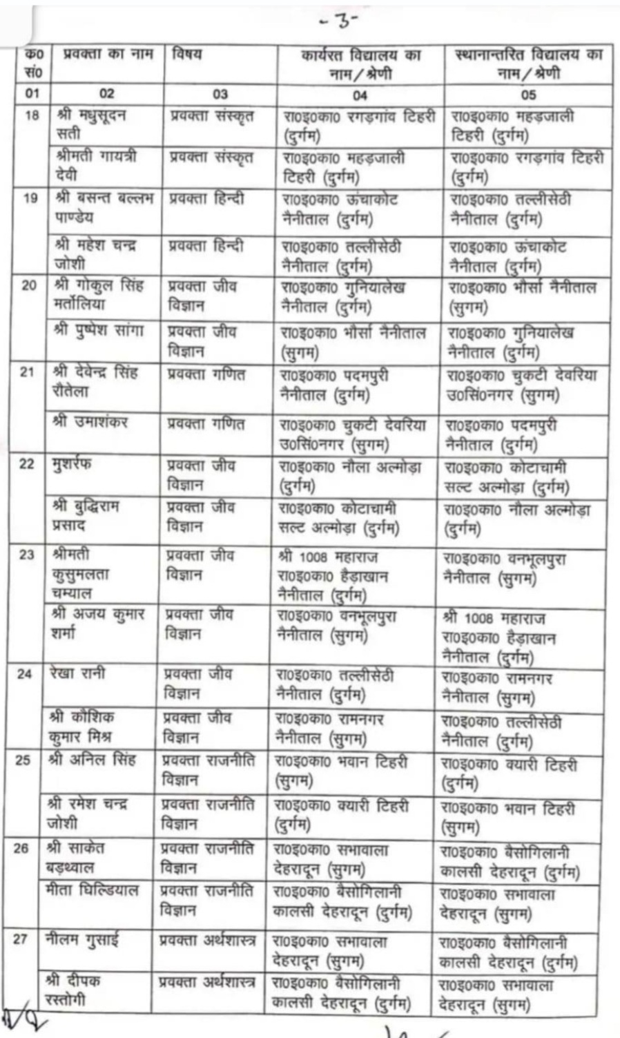 उत्तराखंड में माध्यमिक शिक्षा में प्रवक्ताओं के स्थानांतरण,जारी हुई सूची