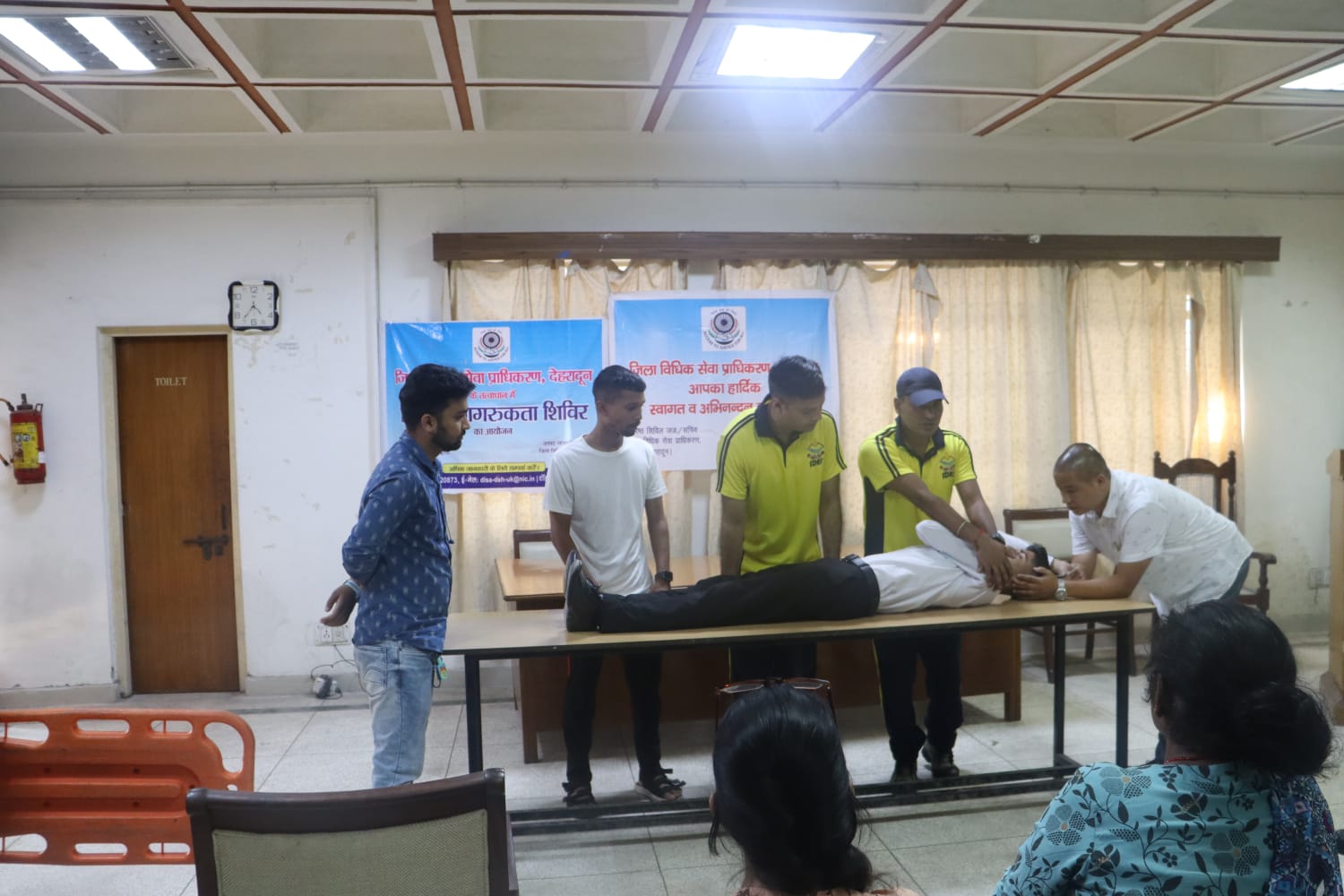 देहरादून:जिला न्यायालय देहरादून के सभागार में जिला विधिक सेवा प्राधिकरण, देहरादून से सम्बद्ध पराविधिक कार्यकर्तागण एवं अन्य व्यक्तियों को आपदा पीडितों को तत्काल आवश्यक सहायता उपलब्ध कराने के सम्बन्ध में आधारभूत प्रशिक्षण के लिए एक प्रशिक्षण कार्यक्रम का आयोजन किया गया है। सचिव, जिला विधिक सेवा प्राधिकरण, देहरादून हर्ष यादव ने कार्यक्रम का शुभारम्भ करते हुये प्रतिभागियों को प्रशिक्षण कार्यक्रम के उद्देश्य एवं महत्व के संबंध में जानकारी दी वहीं इस प्रशिक्षण कार्यक्रम में एस० डी० आर० एफ० वाहिनी जॉलीग्रांट से प्रशिक्षक हे० का० दीपक कुमार, का० यशवंत सिंह, कां मनीष दरियाल तथा जिला आपदा प्रबन्धन देहरादून के राजू शाही भी बतौर प्रशिक्षक उपस्थित रहे।