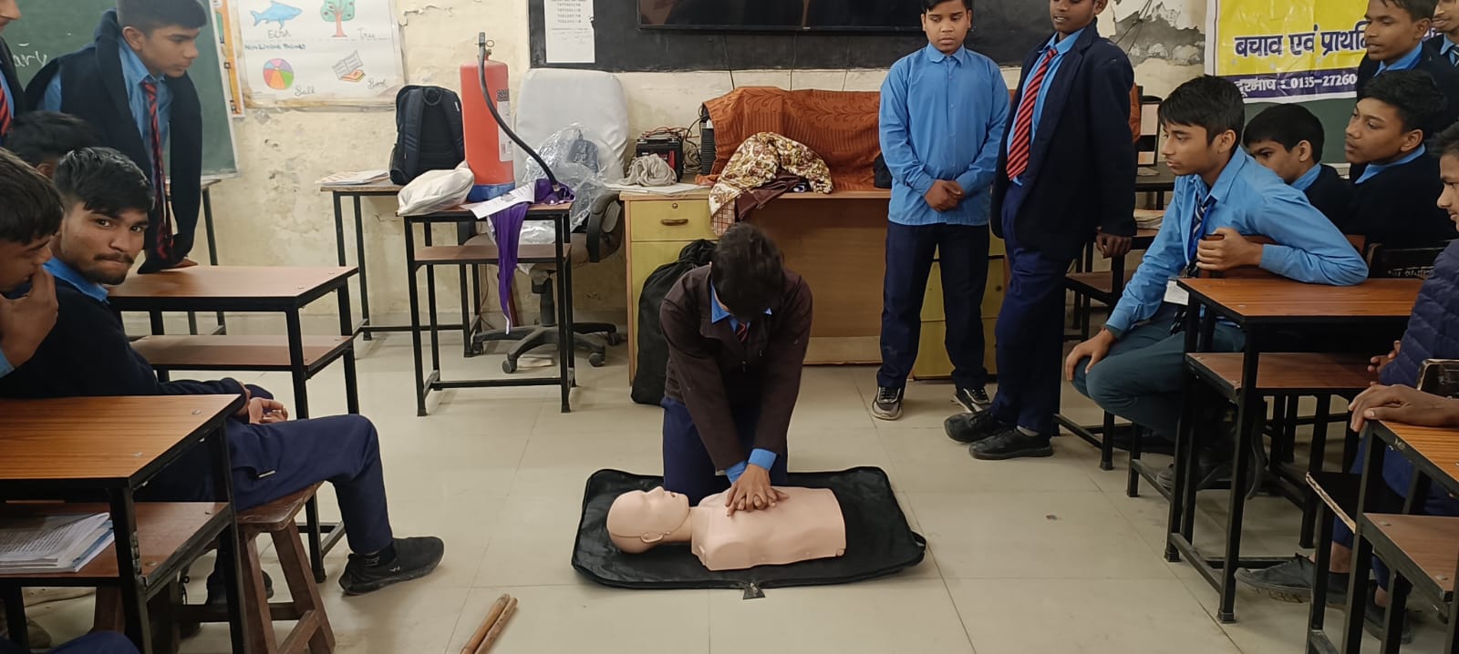 इस प्रशिक्षण कार्यक्रम में छात्र-छात्राओं को विभिन्न प्रकार की आपदाओं की जानकारी, आपदा प्रबंधन विभाग के कार्य, विभिन्न प्रकार की एजेंसियों द्वारा किए जाने वाले कार्य, भूकंप से बचाव का तकनीकी ज्ञान, आग एवं वन अग्नि से बचाव का व्यावहारिक ज्ञान, बाढ़ एवं त्वरित तबाढ़ के पानी में डूबने, बहने अथवा फंसने की स्थिति में बचाव के तरीको जानकारी, खोज एवं बचाव से संबंधित तकनीकी उपकरणों का परिचय एवं प्राथमिक उपचार के अंतर्गत स्ट्रेचर बनाना, हाथो द्वारा शीट बनाना, सीपीआर देना, त्रिकोणीय पटियों की सहायता से खून रोकना, सांप के काटे जाने से संबंधित प्राथमिक उपचार की जानकारी, फ्रैक्चर में त्रिकोणीय पटियों का उपयोग करना आदि से संबंधित जानकारियां दी गई।