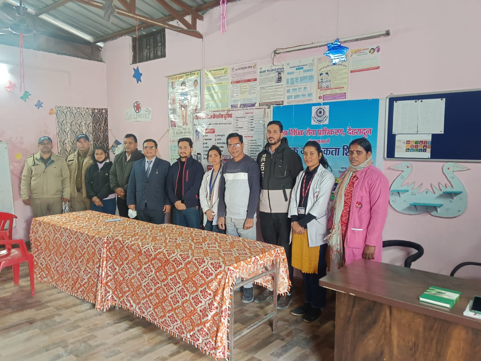 शिविर में कनिष्क सर्जिकल एंड सुपर स्पेशिलिटी हॉस्पिटल, देहरादून के डॉक्टर दिव्यम, नर्स सविता, निहारिका एवं राजेश द्वारा शिविर में उपस्थित हुए व्यक्तियों एवं बालकों का स्वास्थ्य परीक्षण किया गया तथा उन्हें निःशुल्क दवाईयां भी वितरित की गई वहीं शिविर में हर्ष यादव, सचिव जिला विधिक सेवा प्राधिकरण देहरादून ने शिविर में उपस्थित व्यक्तियों को प्राधिकरण से मिलने वाली निशुल्क विधिक सहायता नालसा पोर्टल, नालसा स्कीम, नालसा हेल्पलाईन नं०, प्रतिकर योजनाओं आदि के संबंध में जानकारी दी ।