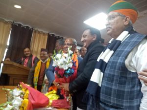 इस अवसर पर मौजूद प्रदेश के मुख्यमंत्री त्रिवेंद्र सिंह रावत,केंद्रीय मानव संसाधन मंत्री रमेश पोखरियाल निशंक,संगठन मंत्री अजय कुमार,मंत्री सुबोध उनियाल,राज्यमंत्री डॉ धन सिंह रावत, टिहरी सांसद महारानी राज्य लक्ष्मी,विधायक पुष्कर सिंह धामी आदि ने नवनिर्वाचित प्रदेश अध्यक्ष को पुष्प गुच्छ भेंट कर बधाईया दी। वही भाजपा कार्यकर्ताओं ने भगत के प्रदेश अध्यक्ष के चयन होने पर जमकर जश्न मनाया।