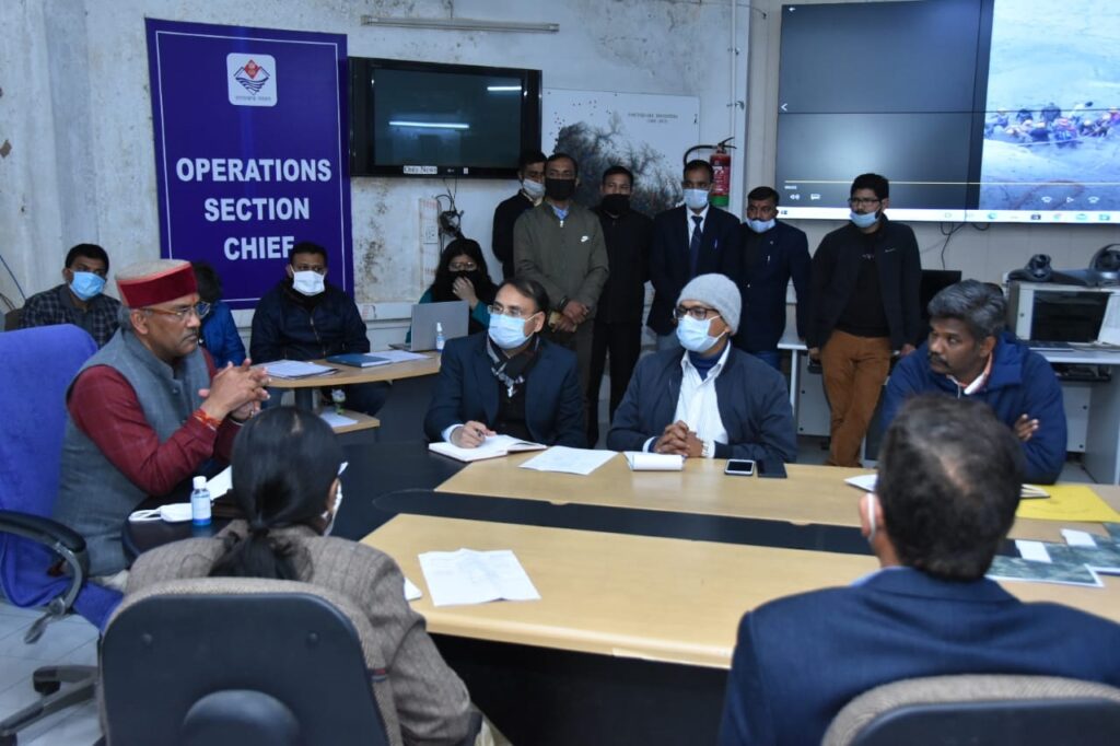 इससे पूर्व मुख्यमंत्री ने सचिवालय स्थित आपदा प्रबन्धन केन्द्र का भी निरीक्षण किया तथा शासन के उच्चाधिकारियों के साथ आपदा से उत्पन्न स्थिति पर विचार विमर्श किया। मुख्यमंत्री ने निर्देश दिये कि आपदा प्रभावित क्षेत्र में राहत एवं बचाव कार्यो की निरन्तर निगरानी की जाय। उन्होंने कहा कि इसके लिये वांछित धनराशि की अविलम्ब व्यवस्था सुनिश्यित की जाय। बैठक में अपर मुख्य सचिव राधा रतूड़ी, सचिव अमित नेगी, एस.ए मुरूगेशन, आयुक्त गढ़वाल रविनाथ रमन, डीआइजी रिद्धिम अग्रवाल, महानिदेशक सूचना डाॅ. मेहरबान सिंह बिष्ट आदि उपस्थित थे।
