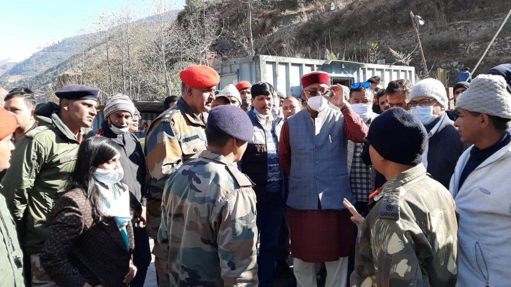 मुख्यमंत्री त्रिवेन्द्र ने कहा कि एनडीआरएपफ की टीम दिल्ली से आई है और कल और जवान आएंगे। आर्मी, पैरामिलिट्री फोर्स और हमारे डाॅक्टर आपदा स्थल पर तैनात किए गए हैं। ऐरियल सर्वे कर उन्होंने स्वयं स्थिति का जायजा लिया। किसी भी प्रकार की जरूरत पड़ने पर वहां आर्मी, वायुसेना और राज्य के हेलीकाॅप्टर तैनात कर दिए हैं। हमारी मेडिकल टीम हर परिस्थिति के लिए तैयार है और 90 जवानों को भी वहां पहुंचा दिया गया है।